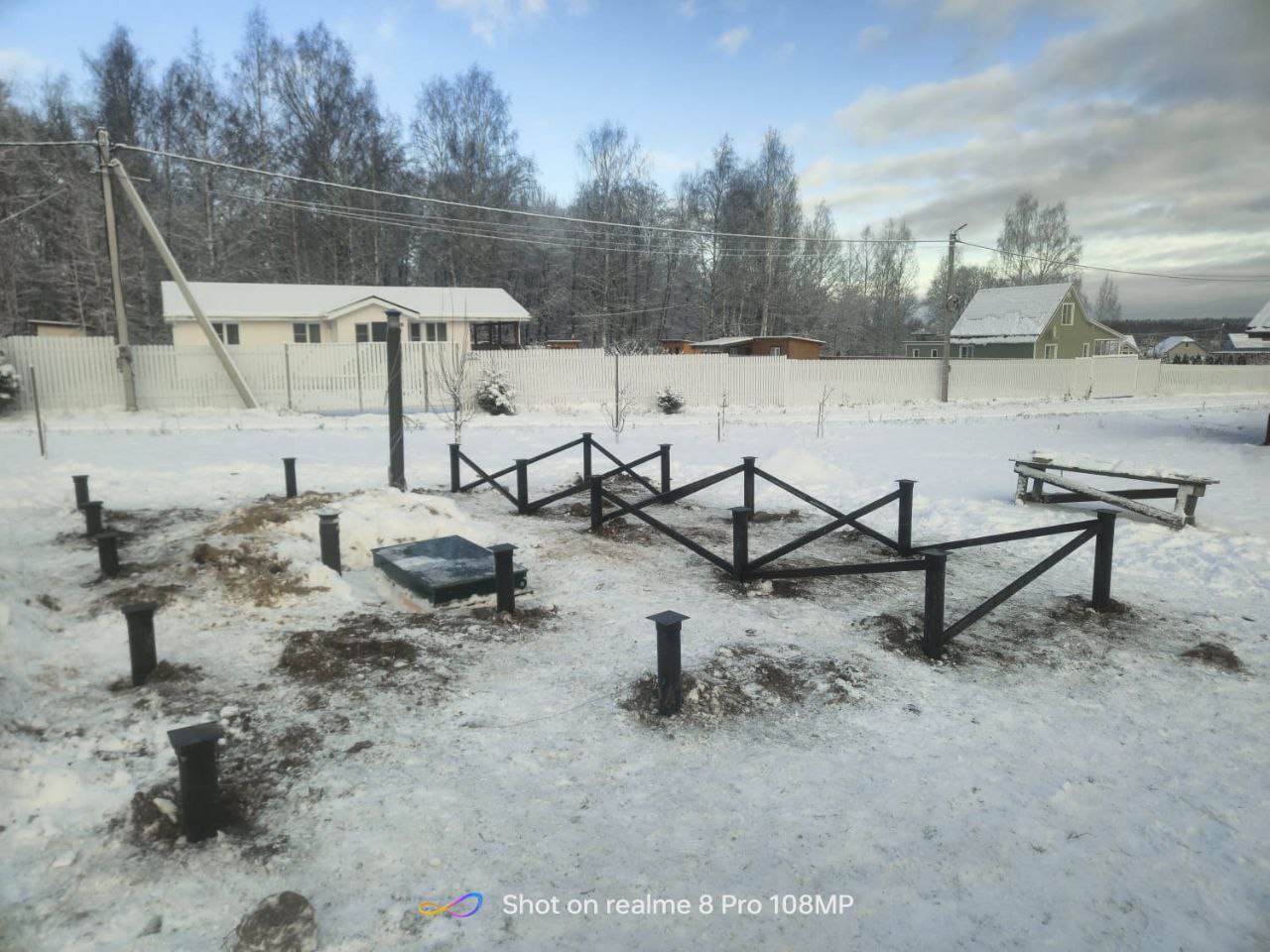 В связи с тем, что работы выполнялись зимой и участок был покрыт снегом, первым этапом стала очистка рабочей зоны от снежного покрова. Мы тщательно расчислили площадку, обеспечив удобный доступ к точкам установки свай и организовав комфортное пространство для размещения оборудования.
