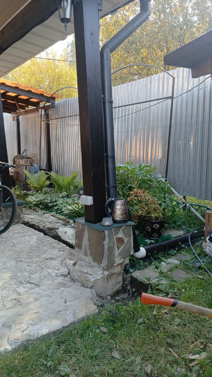 —Выдавило тумбы под опорами навеса - заменили на винтовые сваи